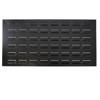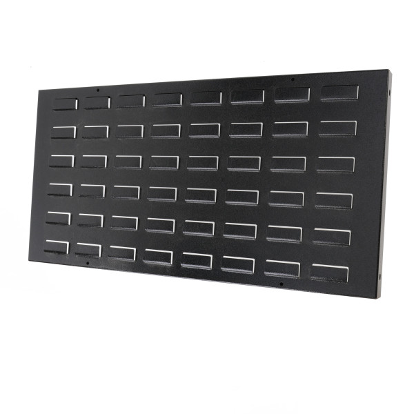 Ta pojedyncza, metalowa tablica pozioma to profesjonalne rozwiązanie zaprojektowane z myślą o segregacji i przechowywaniu drobnych elementów. Wykonana z wytrzymałej stali w kolorze czarnym, posiada system specjalnych nacięć i przetłoczeń, które są idealnie przystosowane do zawieszania pojemników magazynowych (kuwet). Pozioma orientacja panelu pozwala na przejrzyste rozmieszczenie wielu rzędów drobnych części bezpośrednio nad blatem roboczym, co znacząco ułatwia codzienną pracę.