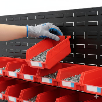 Dzięki zastosowaniu tej tablicy wraz z pojemnikami, Twój warsztat zyska wizualny porządek, a zarządzanie zapasami drobnych części stanie się intuicyjne i bezbłędne.