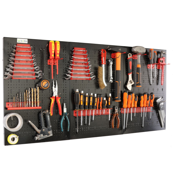 Maksymalna Organizacja: System perforacji oraz bogaty zestaw dedykowanych uchwytów pozwalają na porządkowanie kluczy, wkrętaków, wierteł, młotków i innych akcesoriów.