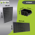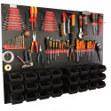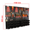 Dolna strefa (Panel na kuwety): Posiada specjalnie wyprofilowane wypusty, które służą do stabilnego zawieszania pojemników warsztatowych. To idealne miejsce na drobne akcesoria, które muszą być zawsze pod ręką.