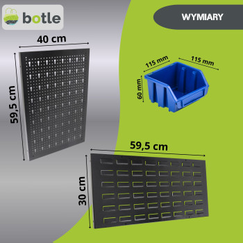 Górna strefa (Perforowana): Wyposażona w gęstą sieć otworów, przeznaczona do montażu różnorodnych uchwytów, haków oraz półek na klucze, wkrętaki czy młotki. System ten pozwala na dowolną rekonfigurację stanowiska w zależności od aktualnych potrzeb.