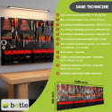 Ta metalowa tablica warsztatowa to kompleksowe rozwiązanie dla osób poszukujących bezkompromisowego porządku. Unikalna, dwuczęściowa konstrukcja łączy w sobie zalety klasycznej tablicy perforowanej z funkcjonalnym panelem magazynowym. Solidne wykonanie z czarnej stali zapewnia estetyczny wygląd oraz wyjątkową odporność na uszkodzenia, co pozwala na bezpieczne użytkowanie w profesjonalnych warsztatach i przydomowych garażach.