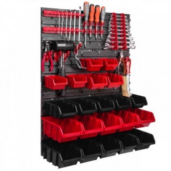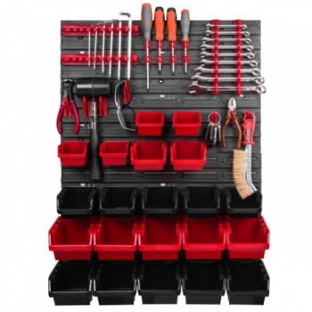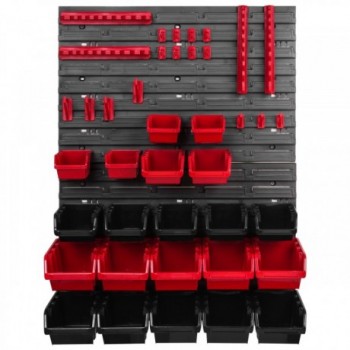 Odkryj nowy poziom organizacji z naszym zestawem tablic narzędziowych, który wniesie porządek do Twojego stanowiska pracy. Wykonany z lekkiego, ale wytrzymałego materiału, idealnie nadaje się zarówno do profesjonalnych warsztatów, jak i domowych garaży. Zawiera 21 pojemników w różnych rozmiarach i kolorach, umożliwiając łatwe przechowywanie i segregację narzędzi. Montaż jest dziecinnie prosty dzięki wbudowanym otworom montażowym. Zestaw obejmuje różnorodne uchwyty na klucze i śrubokręty, a także wszechstronne wieszaki. Zamień chaos w funkcjonalną przestrzeń, dostosowując układ paneli wedle własnych potrzeb.